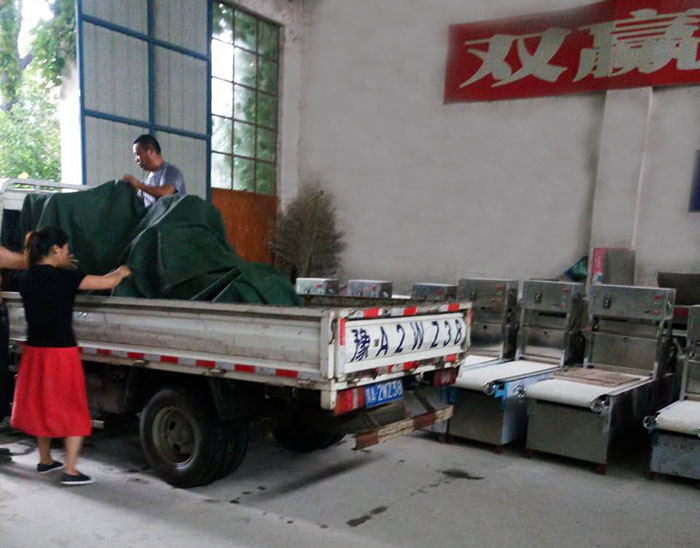 周口老鄉(xiāng)萬先生 在廣東江門市批發(fā)餃子皮生意,生意做的很是紅火。現(xiàn)在想擴(kuò)大規(guī)模做燴面坯批發(fā)生意,在網(wǎng)上了解到一品鮮,經(jīng)過多次溝通后乘坐飛機(jī)到鄭州一品鮮總部進(jìn)行考察。現(xiàn)場定下一臺HMJ -2型雙輥單刀燴面機(jī), 當(dāng)天下午調(diào)好機(jī)器,裝車發(fā)走。